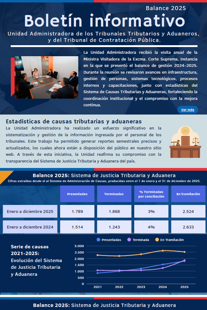 La Unidad Administradora de los Tribunales Tributarios y Aduaneros, y del Tribunal de Contratación Pública te invita a conocer los principales avances, logros y desafíos de nuestra gestión durante el último año.